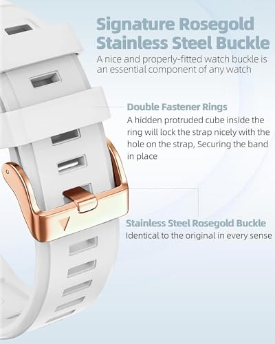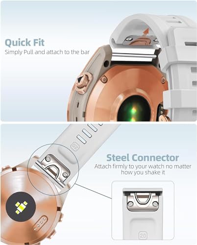 Specificaties: CZKE Voor Garmin Fenix 6s 5s Horlogeband 20mm armband voor Fenix 6s Pro 5s Plus Rose Gold Gesp Siliconen Snelle vervanging Polsriemen (Color : White, Size : 20mm)