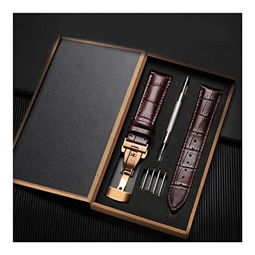 Horlogebandje Strap Bamboo Patroon Strap Echt lederen horlogeband met dubbele pers Butterfly gesp horloges accessoires 12-24 mm (Band Color : B, Band Width : 18mm)