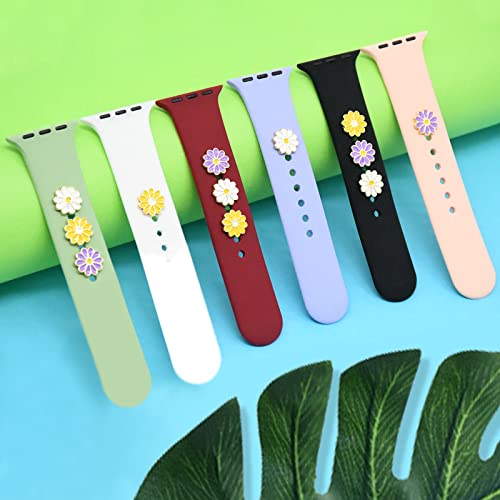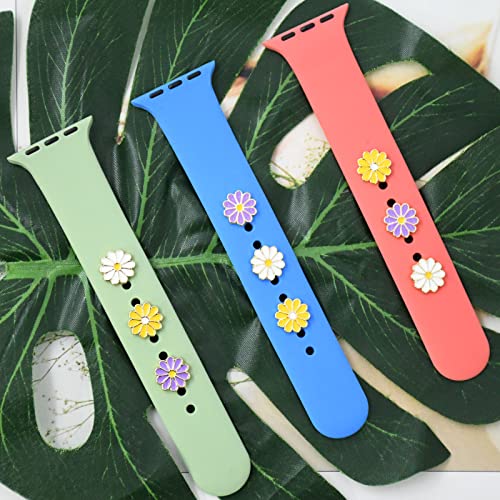 HotHome 3 stuks horlogebandjes voor dames, bedels, compatibel met Apple Watch, siliconen armband, metaal, decoratieve sieraden, siliconen band, bedels voor smartwatch SE 7, 6, 5, 4, 3, 2, 1,
