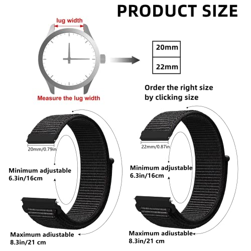 Specificaties: Nylon stoffen horlogebandjes, 20 mm/22 mm, armband voor heren en dames, reserveband, snelsluiting, smartwatch, sporthorloges, reservearmband, instelbaar, zacht, ademend horlogebandje
