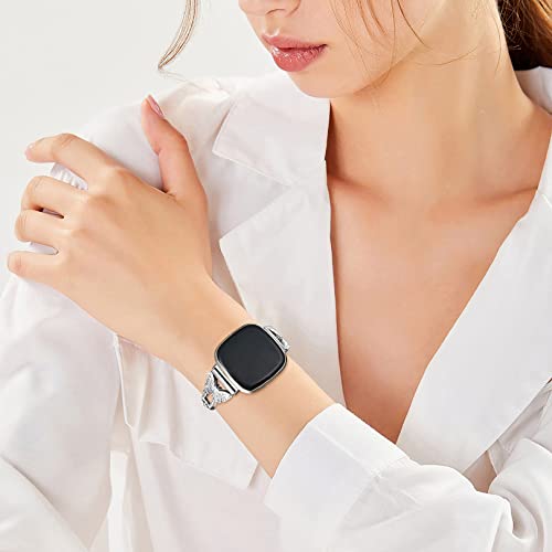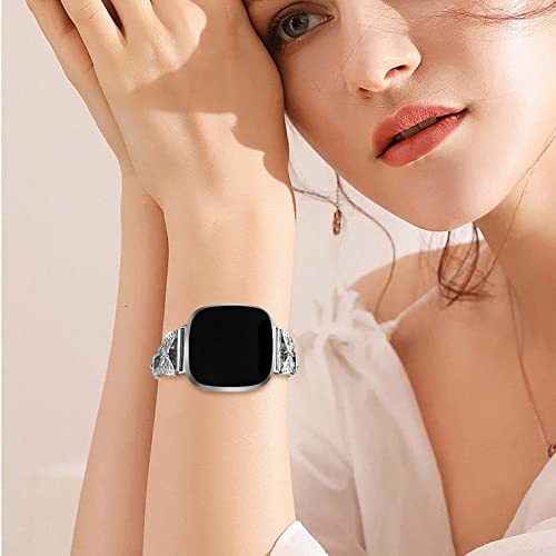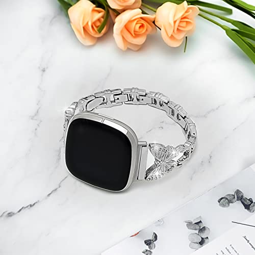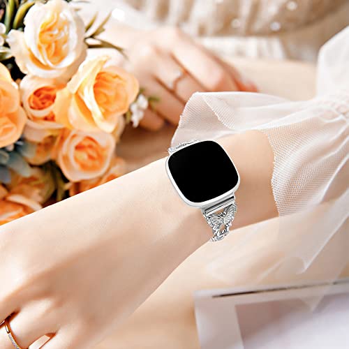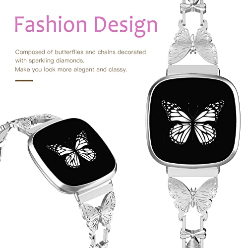 Wizvv band Compatibel met Fitbit Versa 3 Sense Leuke vlinder Stijlvolle glanzende sieraden Snelle vervangende metalen armband voor meisjes vrouwen