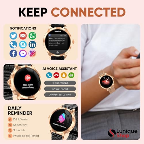 🌈 ALLES IN EEN DAMESHORLOGE: Dit Bluetooth-horloge voor dames is het ideale hulpmiddel voor actieve vrouwen! Eenvoudig op je smartphone aan te sluiten, de gemiddelde gebruiksduur bedraagt 4-5 dagen, afhankelijk van het gebruik. Niet gebruiken in warme en vochtige omgevingen. Als cadeau voor een verjaardag, Valentijnsdag, Moederdag en andere gelegenheden.