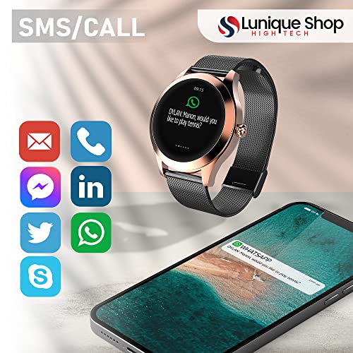 🌈 ONTVANG BERICHTEN EN TELEFOONTJES: Ontvang notificaties voor oproepen of sms’jes, afsprakenplanner en andere media (Facebook, WhatsApp, LinkedIn, Instagram en Twitter) op je smartwatch voor dames. Het is een stopwatch, alarm, geheugen en apparaatzoeker.