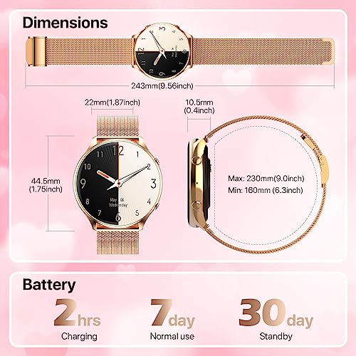 Specificaties: Nendefin Smartwatch voor dames, smartwatch voor Android iOS