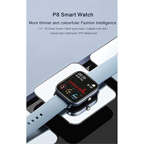 Specificaties: P8 Ultraslank touchscreen smartwatch met 1,4-inch vierkant display Draagbare fitness met hartslag- en meter Slaap IP67 waterdicht sporthorloge met stopwatch Afstandsbediening