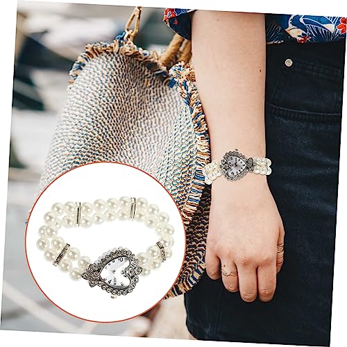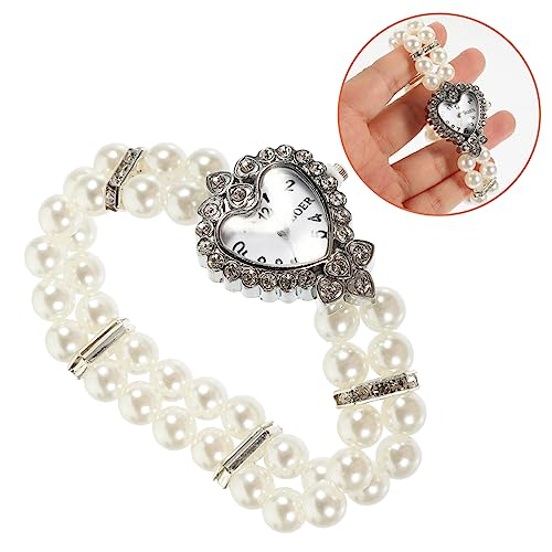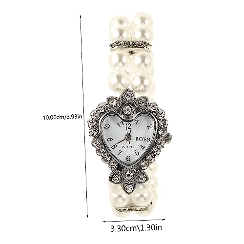 Specificaties: TENDYCOCO 1 St Dames Armband Horloge Parel Armband Armband Jade Strass Armband Dames Diamanten Armband Mooie Horloges Voor Meisjes Dame Horloge Legering Wit Polsbandje Mevrouw Geketend
