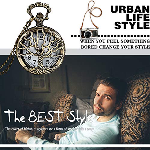 Specificaties: LANCARDO Zakhorloge vintage heren dames horloge analoog kwarts met ketting brons kettinghorloge pullover ketting kerstcadeau