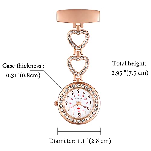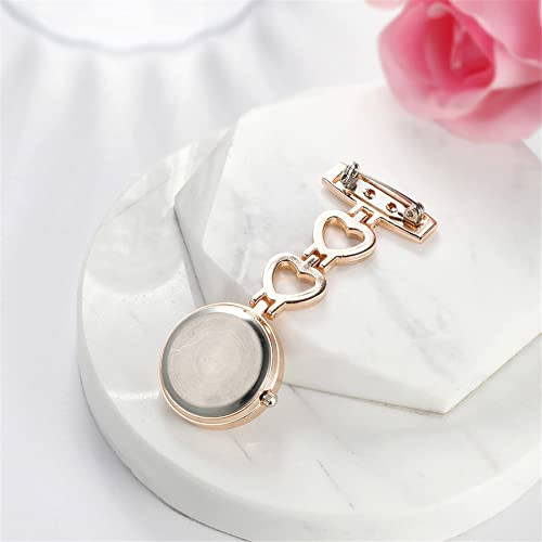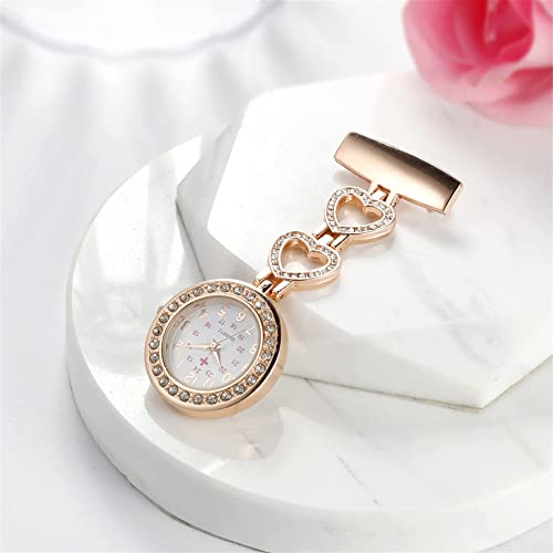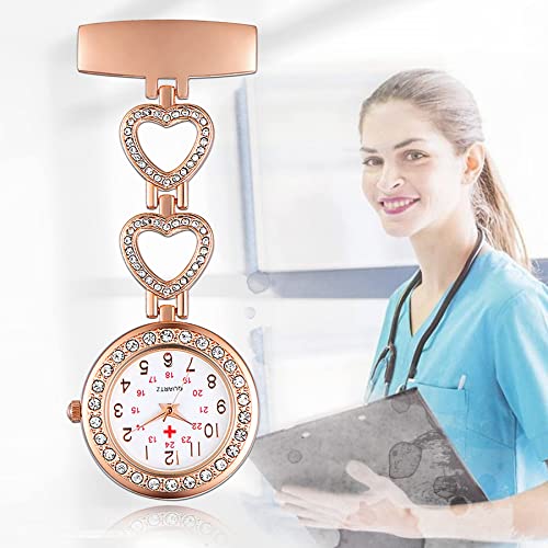 Silverora Verpleegsterhorloge, verpleegsterhorloge, liefde, zirkonia, hart, zusterhorloge, kwarts, clip-on zakhorloges voor dokter, medisch horloge, paramedicus, cadeau, roségoud, roségoud