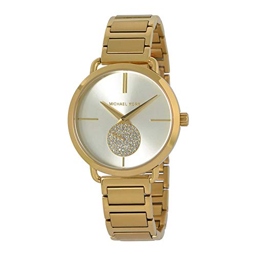 Het gouden tone Michael Kors Portia Watch is het gezicht van strakke, moderne chic. Een minimalistische Gold Sunray Dial met Stick Indexes en Pavé Crystal Zestig-seconden sub-dial schittert tegen een goudkleurige behuizing en H-Link-armband.