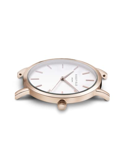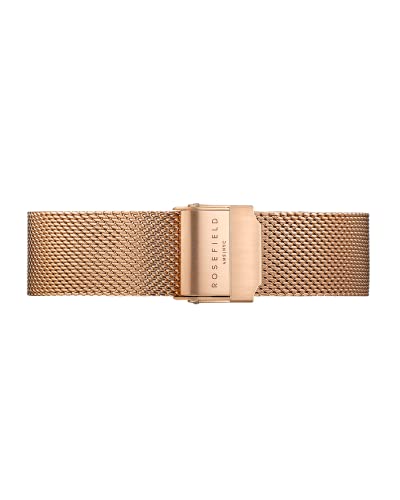 Rosefield The Mercer Dames Horloge – Rosé Goud Ø38mm – MBR-M45De MERCER collectie is een ode aan Mercer Street, een toonaangevende winkelstraat in Soho en het thuis van de hippe voorhoede. De belangrijkste stijlkenmerken van deze collectie zijn de elegante en moderne bandjes van mesh roestvrijstaal.Kast8 mm dunne Rosé Goud; gouden horlogekast. Diameter: 38 mm.BandjeRosé Goud; goudkleurige meshband gemaakt van roestvrij staal. Het bandje kan handmatig versteld worden tot minimaal 15 cm en maximaal 21 cm. Dit bandje is verwisselbaar met bandjes uit de Mercer, Gramercy & Bowery collectie.WijzerplaatZwart met Rosé Goud; gouden wijzers en index.UurwerkJapans Quartz uurwerk.GarantieTwee jaar garantie vanaf de dag van aankoop.Waterdichtheid3 ATM waterbestendig.
