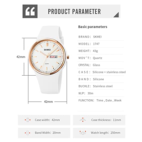 Specificaties: SKMEI Horloges Voor Jonge Vrouwen Dame Sport Siliconen Band Grote Gezicht Grote Waterdichte Mode Casual Eenvoudige Quartz Analoge Dag Datum Meisjes Gift Wit Polshorloge