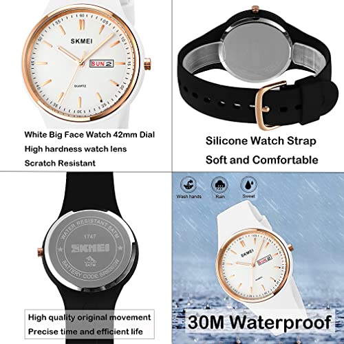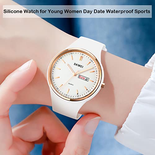 SKMEI Horloges Voor Jonge Vrouwen Dame Sport Siliconen Band Grote Gezicht Grote Waterdichte Mode Casual Eenvoudige Quartz Analoge Dag Datum Meisjes Gift Wit Polshorloge