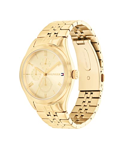 Tommy Hilfiger Analoog multifunctioneel kwartshorloge met goudkleurige roestvrijstalen armband voor dames – 1782592